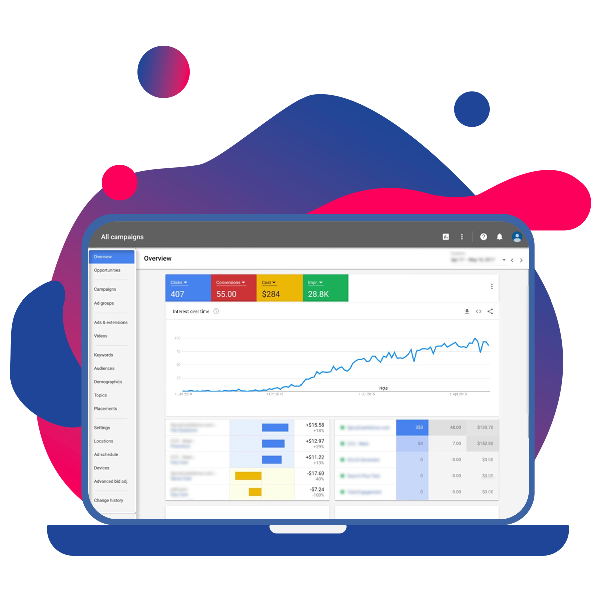 Wil je zo laag mogelijke klikprijzen, hoge kwaliteitsscores en doorklikratio’s, meer relevante bezoekers én meer conversies? Hello it’s me is als Google Premier Partner jouw persoonlijke campagnemanager. Wij inventariseren jouw doelstellingen en analyseren jouw website en doelgroep. Vervolgens zetten wij een Google Ads-campagne op, monitoren en optimaliseren deze, om vervolgens de de behaalde resultaten te evalueren en de dynamische campagne nog verder te optimaliseren.